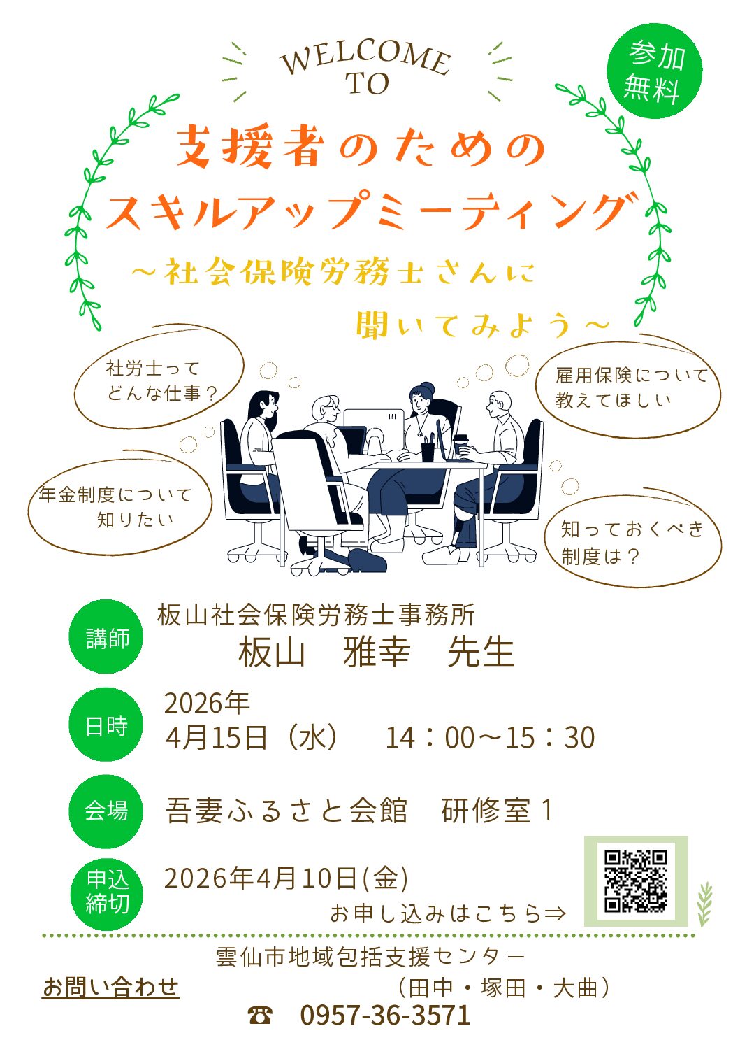 2026年4月15日(水)、社会保険労務士の板山雅幸先生をお招きしスキルアップミーティングを開催いたします。