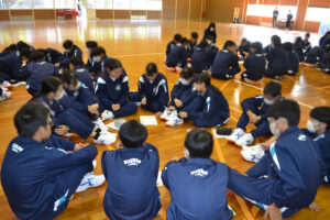 この訓練は、認知症の方を地域で見守ることができるまちづくりを目指して、瑞穂中学校全校生徒およそ100名と先生方、自治会長、民生委員、地元の高齢者施設関係者、雲仙市高齢者等見守りネットワーク推進協議会委員(消防署、グループホーム代表者、介護支援専門員代表者、シルバー人材センター)等多くの方々が参加されました。